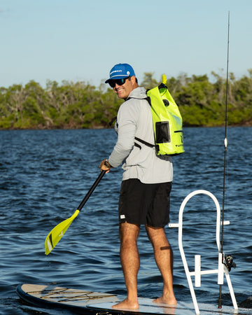 Adventure-ready and built to perform, the Tunaskin 20L Dry Bag Backpack keeps your gear 100% waterproof from shore to sea. Made from heavy-duty PVC and Tarpaulin with reinforced seams, it’s tough enough for any paddle, surf, or boat trip — and it floats if it goes overboard. A waterproof exterior zipper pocket protects your phone or keys, while an exterior mesh pocket and multiple D-rings keep gear organized and secure. With an adjustable shoulder strap for all-day comfort, this pack is your reliable companion for every adventure on or off the water.