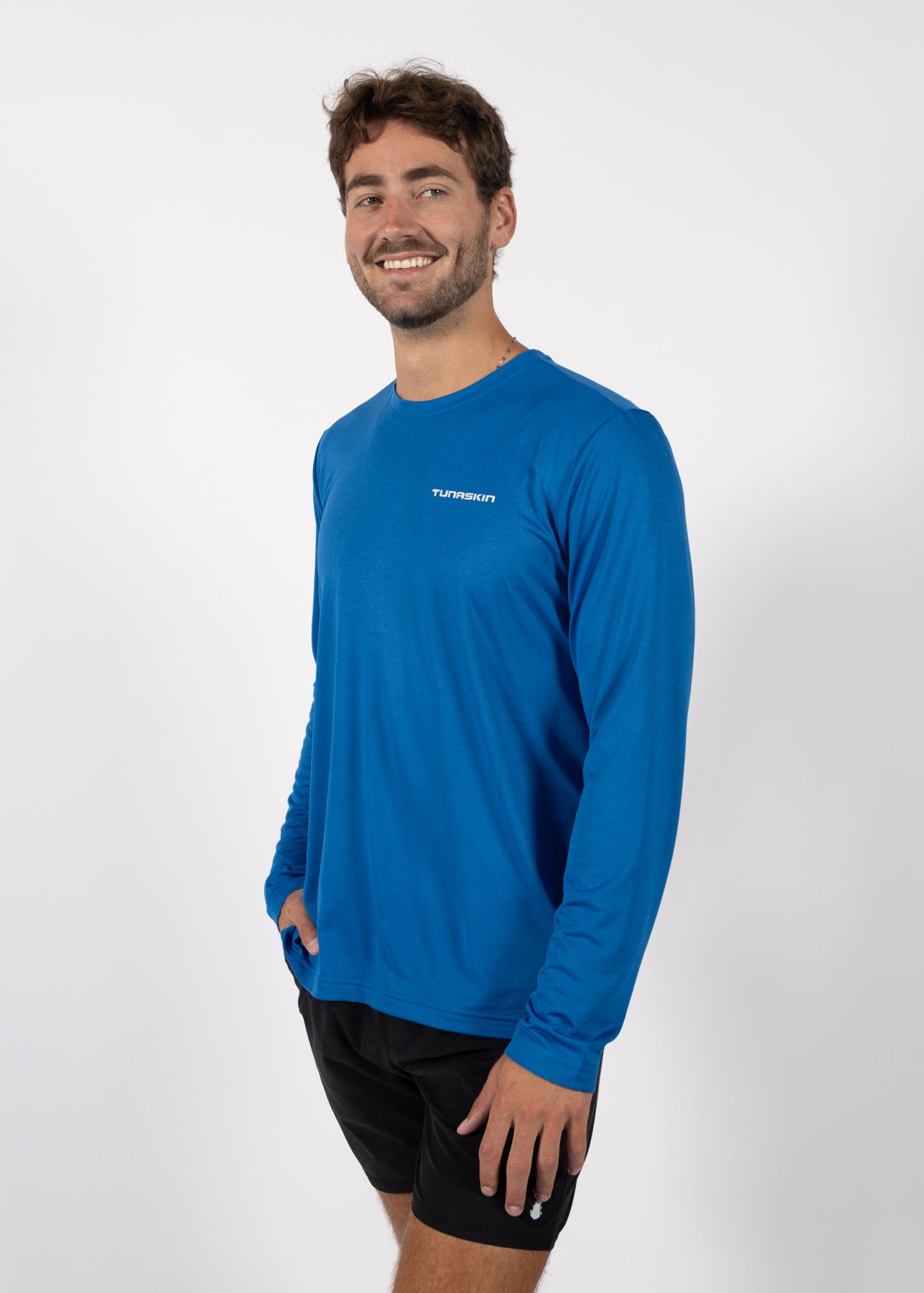 Crafted with REPREVE fiber, our ECHO Collection has transformed recycled bottles into high performance apparel. This men’s long sleeve tee is made from 100% recycled polyester—28 bottles in every shirt—delivering the lightweight, quick drying comfort and UPF 35+ sun protection you expect from Tunaskin.