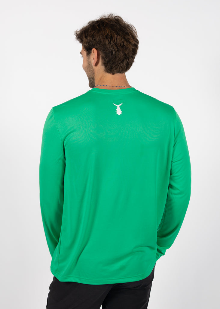 Engineered with REPREVE fiber, our ECHO Collection transforms recycled bottles into high-performance apparel. Our men’s long sleeve tee is made from 100% recycled polyester—28 bottles in every shirt—delivering the lightweight, quick drying performance you expect from Tunaskin.