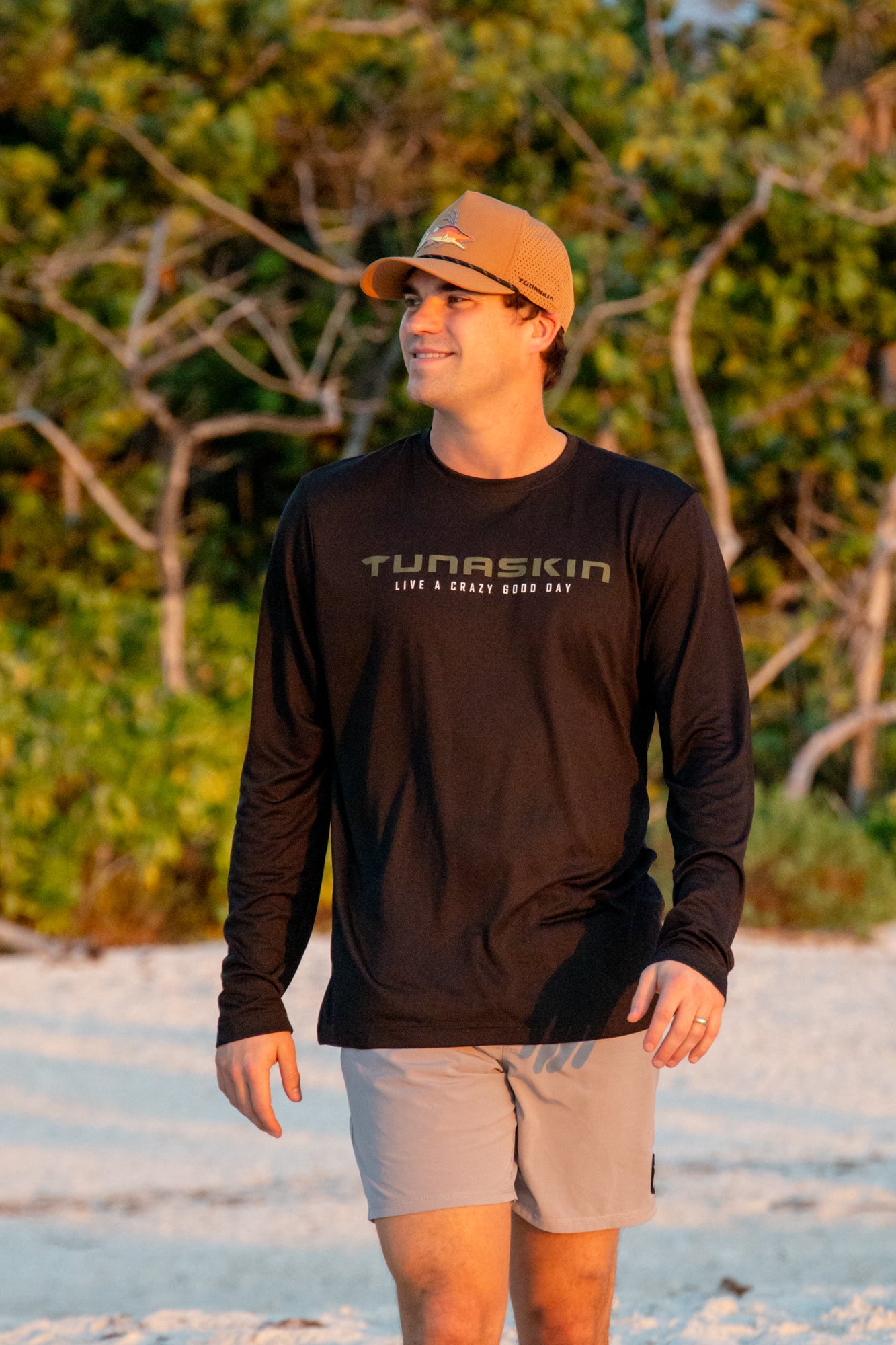 Engineered with REPREVE fiber, our ECHO Collection transforms recycled bottles into high-performance apparel. Our men’s long sleeve tee is made from 100% recycled polyester—28 bottles in every shirt—delivering the lightweight, quick drying performance you expect from Tunaskin.