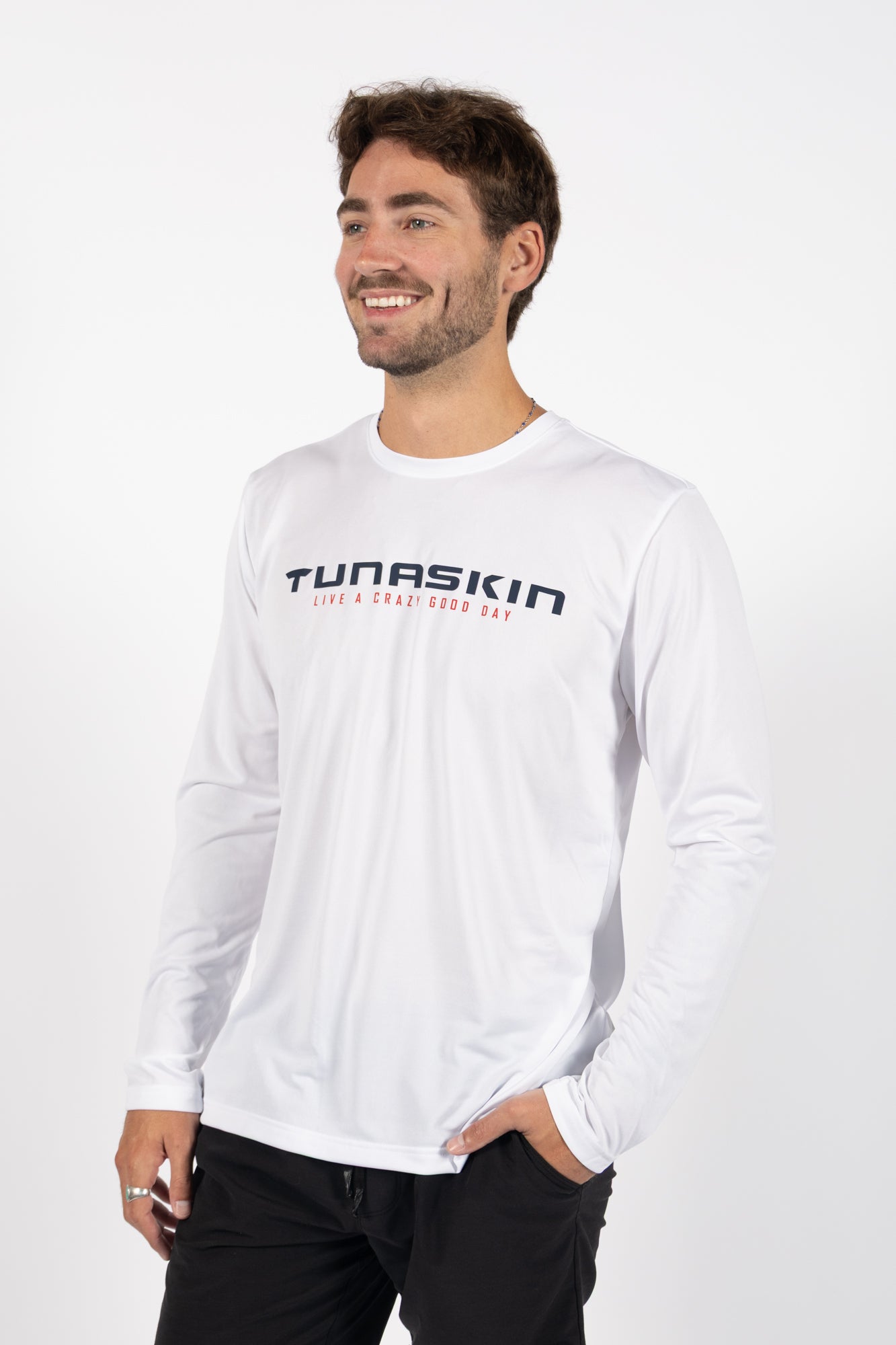 Engineered with REPREVE fiber, our ECHO Collection transforms recycled bottles into high-performance apparel. Our men’s long sleeve tee is made from 100% recycled polyester—28 bottles in every shirt—delivering the lightweight, quick drying performance you expect from Tunaskin.