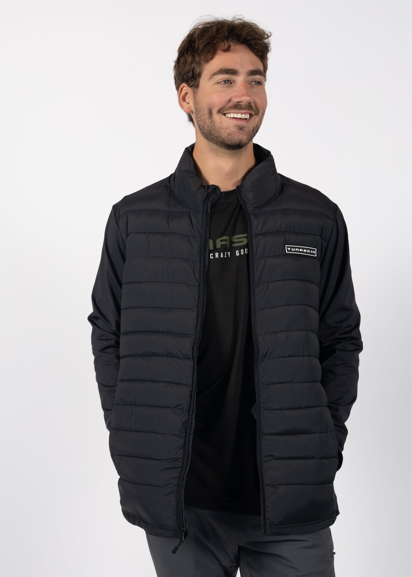 Our Men’s Jetty Jacket is a hybrid full zip jacket built for comfort, versatility, and everyday coastal adventures. Its lightweight insulated body stretches with your movement, while the raglan sleeves feel buttery soft against the skin. With a stand up collar for added warmth and side hip pockets for essentials, this jacket combines performance, style, and unmatched comfort—perfect for boating, breezy walks, or layering over casual outfits.