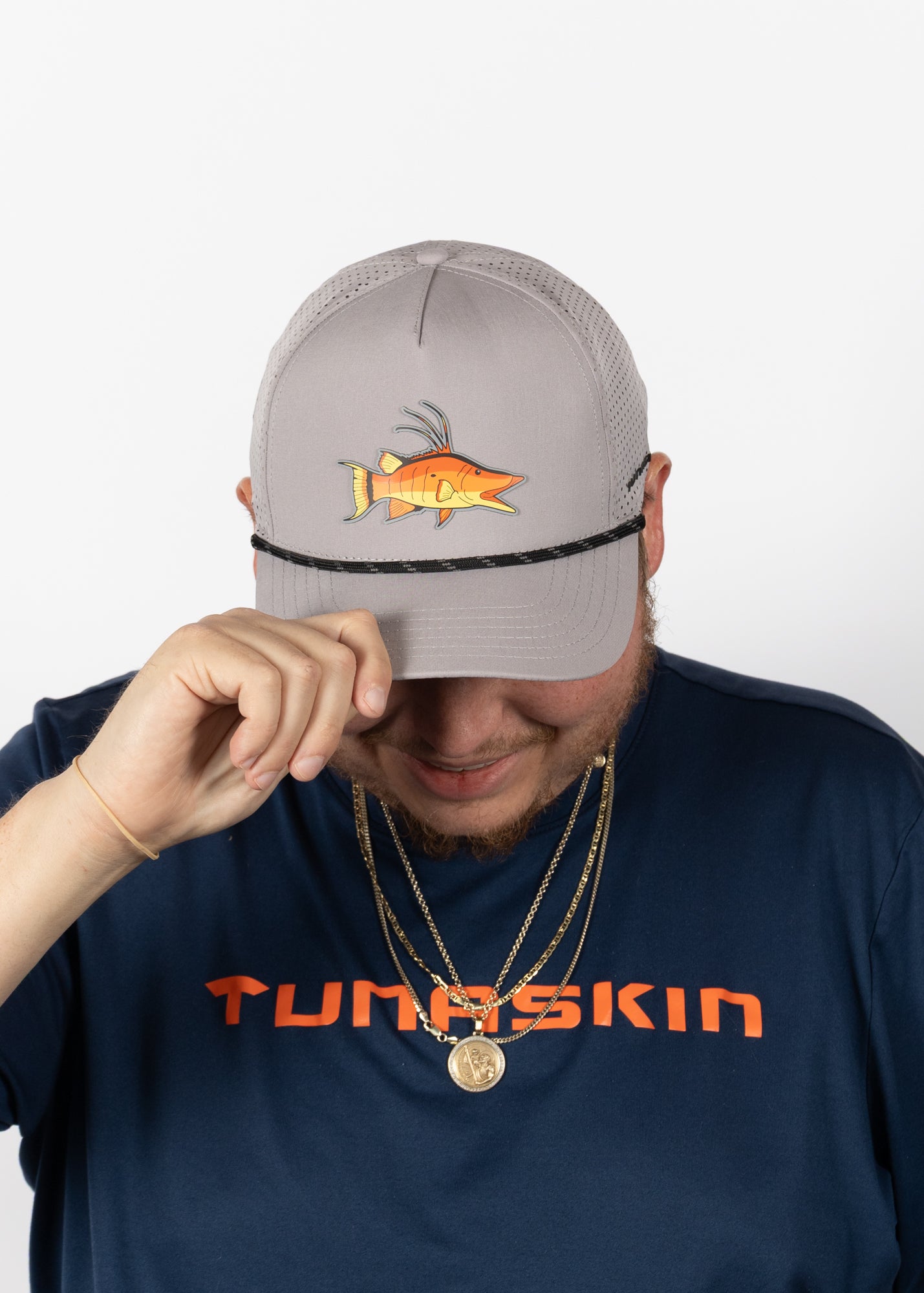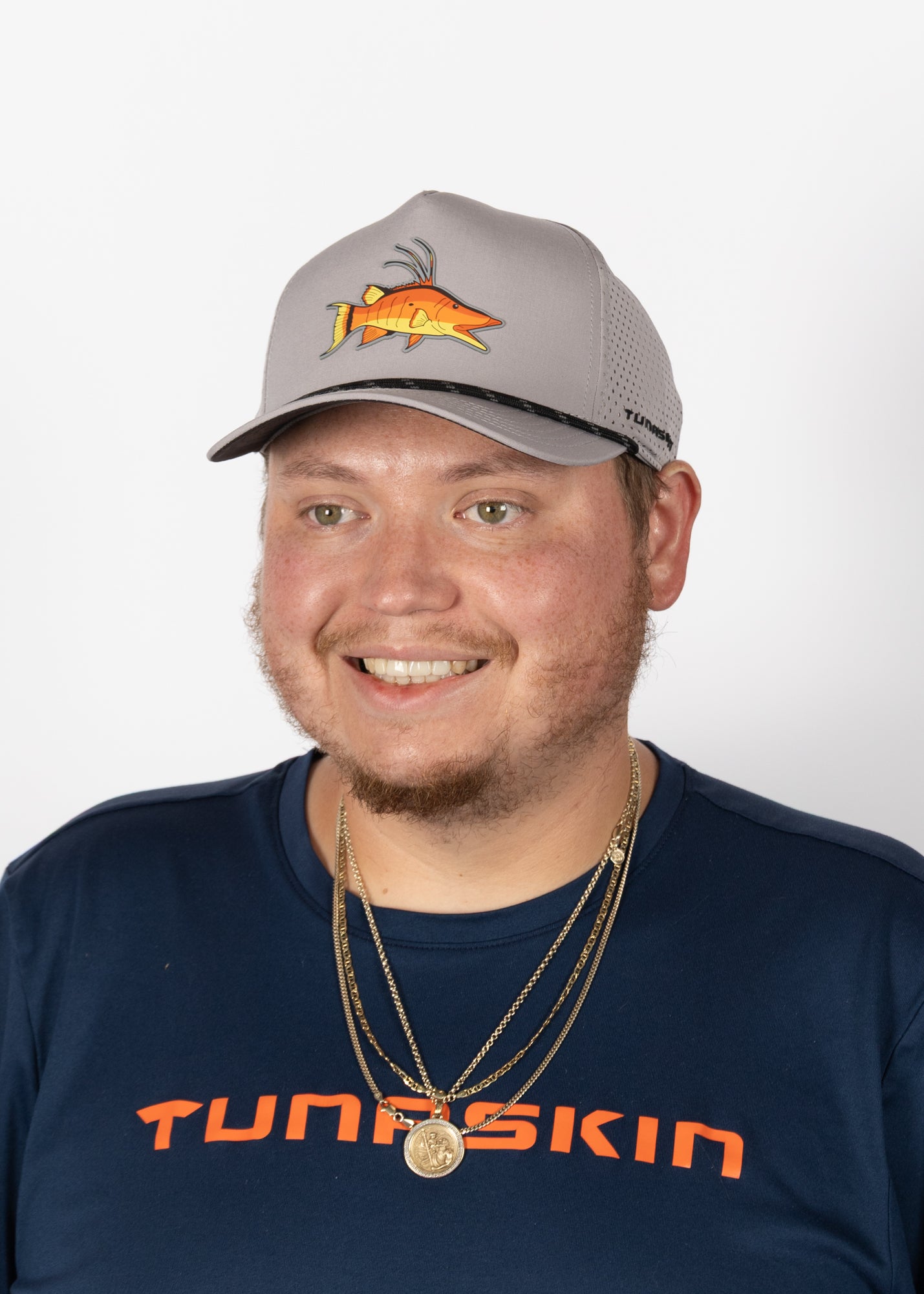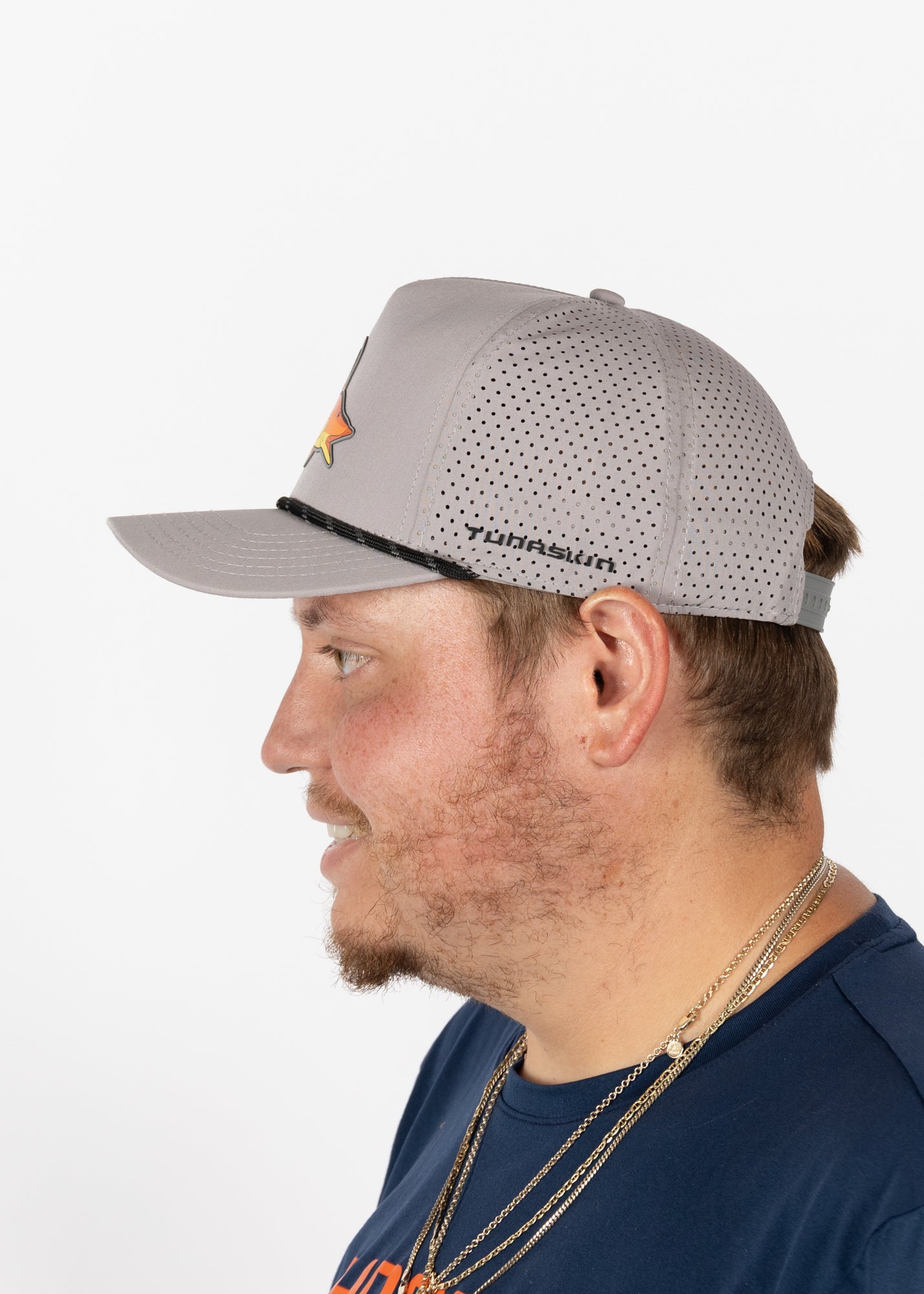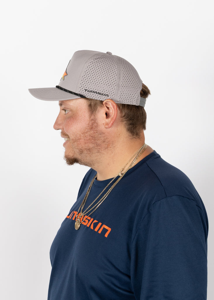 The Tunaskin Hogfish Hat brings coastal style and performance together. Designed with a mid-crown, structured fit, this 5-panel hat features breathable tech fabric with perforated back panels to keep you cool on sunny days.
