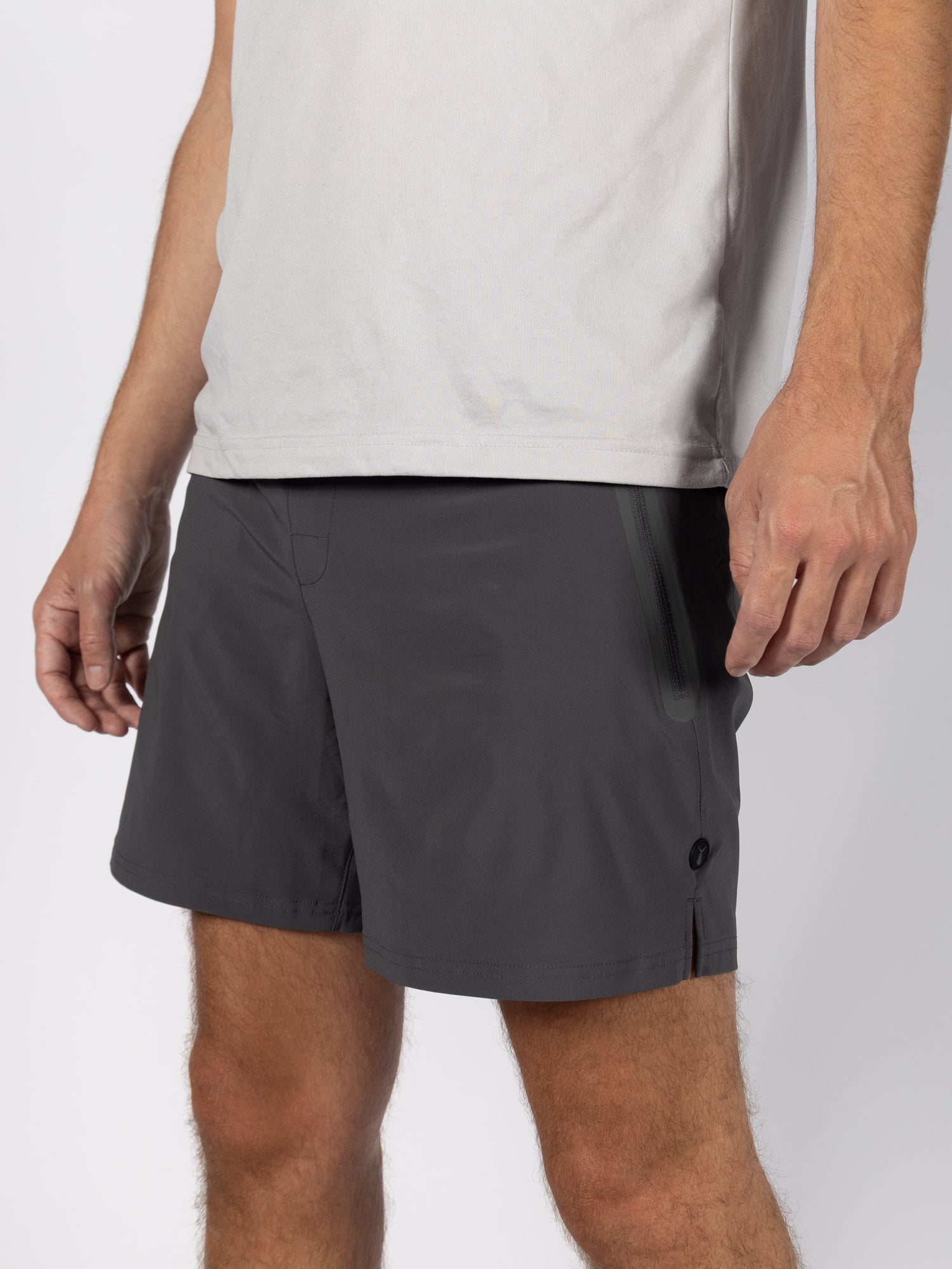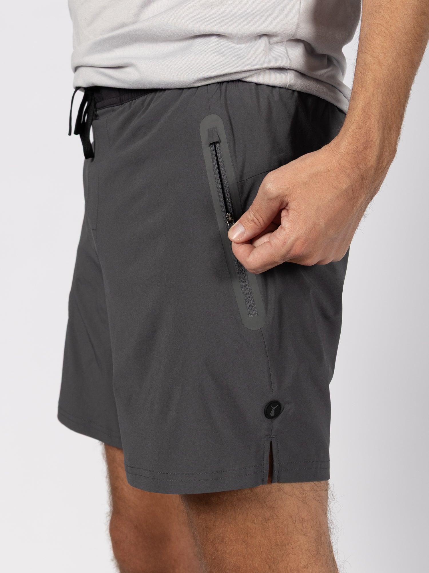 Constructed from a lightweight, breathable blend of 88% recycled polyester and 12% spandex, the Sway Shorts feature a 6 inch inseam, side vents at the leg opening for mobility, and a premium stretch drawcord. Welded side zip pockets securely hold your phone and AirPods, while a rear zip pocket with a shock cord zipper pull keeps essentials safe. Finished with an interior cord loop for easy hanging, these shorts are designed for motion, comfort, and everyday versatility.