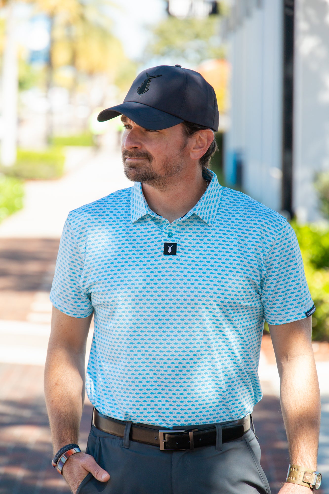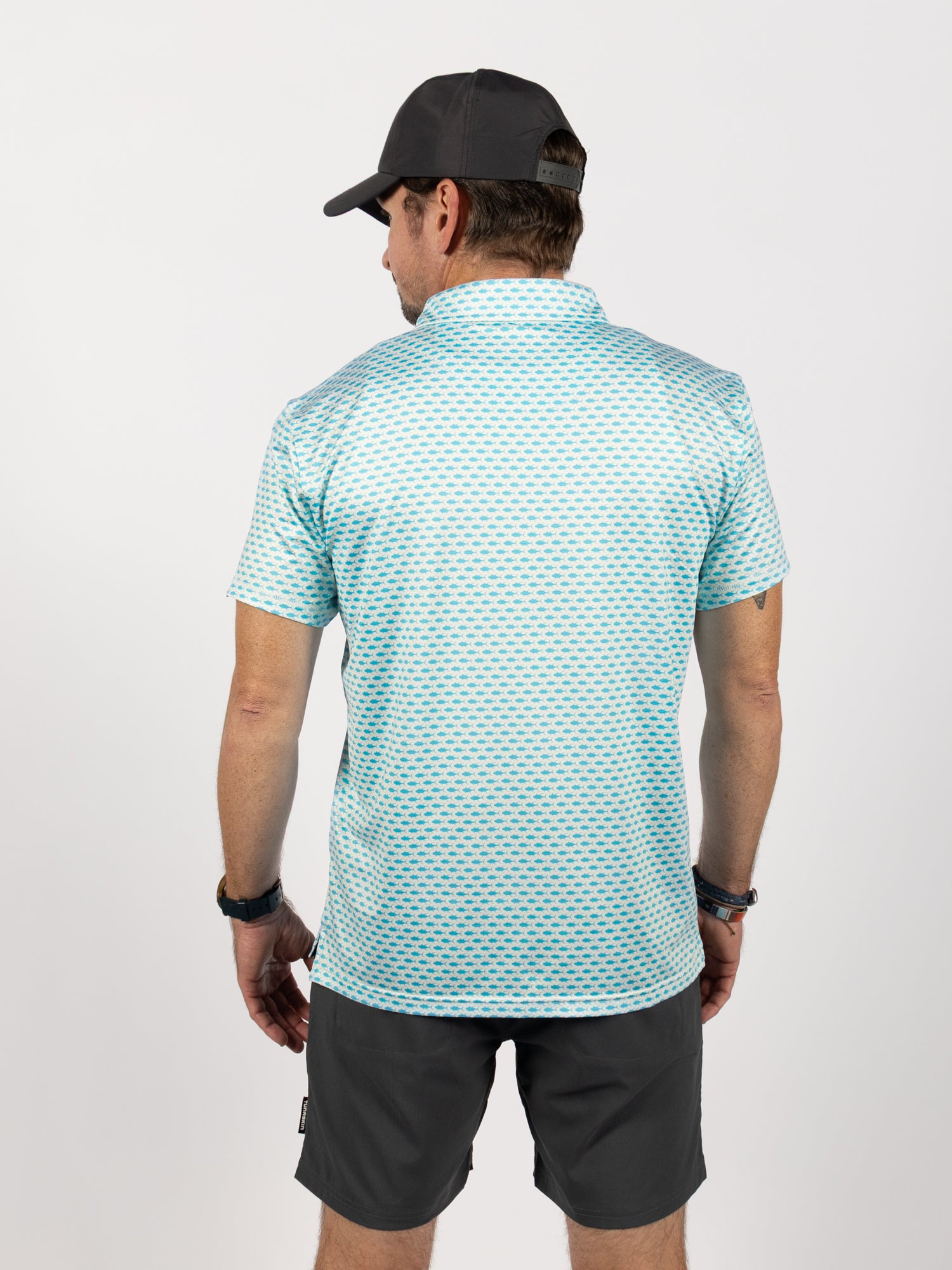 Offered in two solid colors and two modern patterns, it’s a high performance polo designed for active days on and off the water.