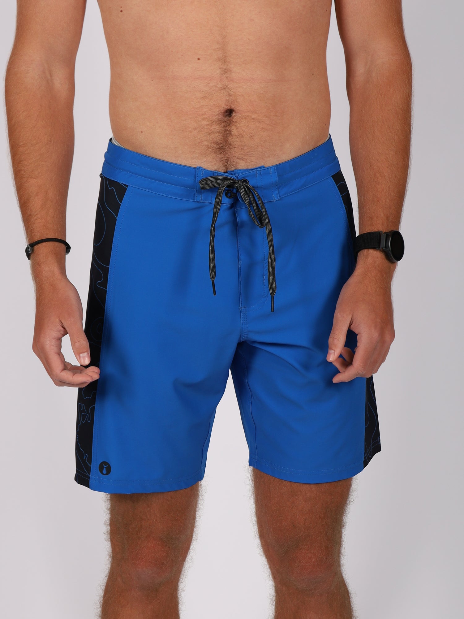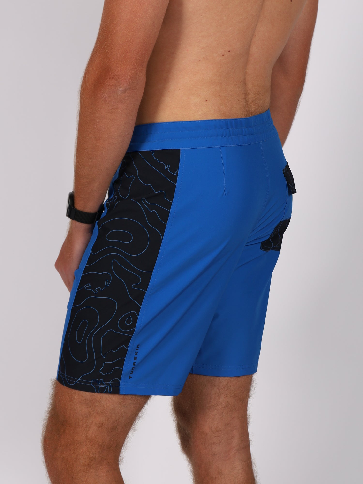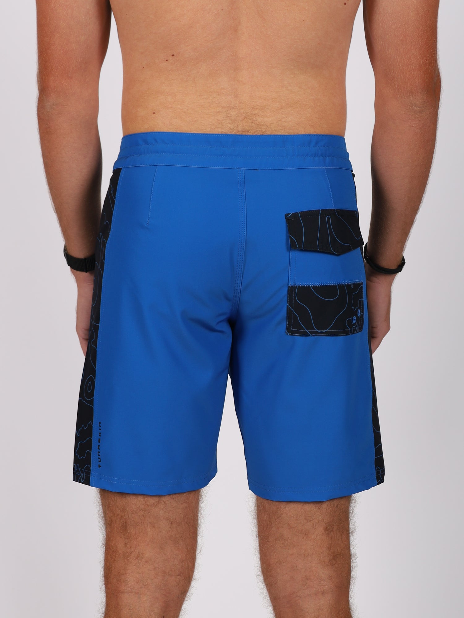 The Crest Boardshorts are unlined and designed for all day comfort in and out of the water. Lightweight with a natural feel, they feature a drawstring tie waist with velcro closure for a secure fit. A back quick-drain pocket with velcro closure includes a key loop to keep small essentials secure. The 8 inch inseam offers a modern length, while the black fabric showcases our custom topo pattern for that subtle Tunaskin signature.