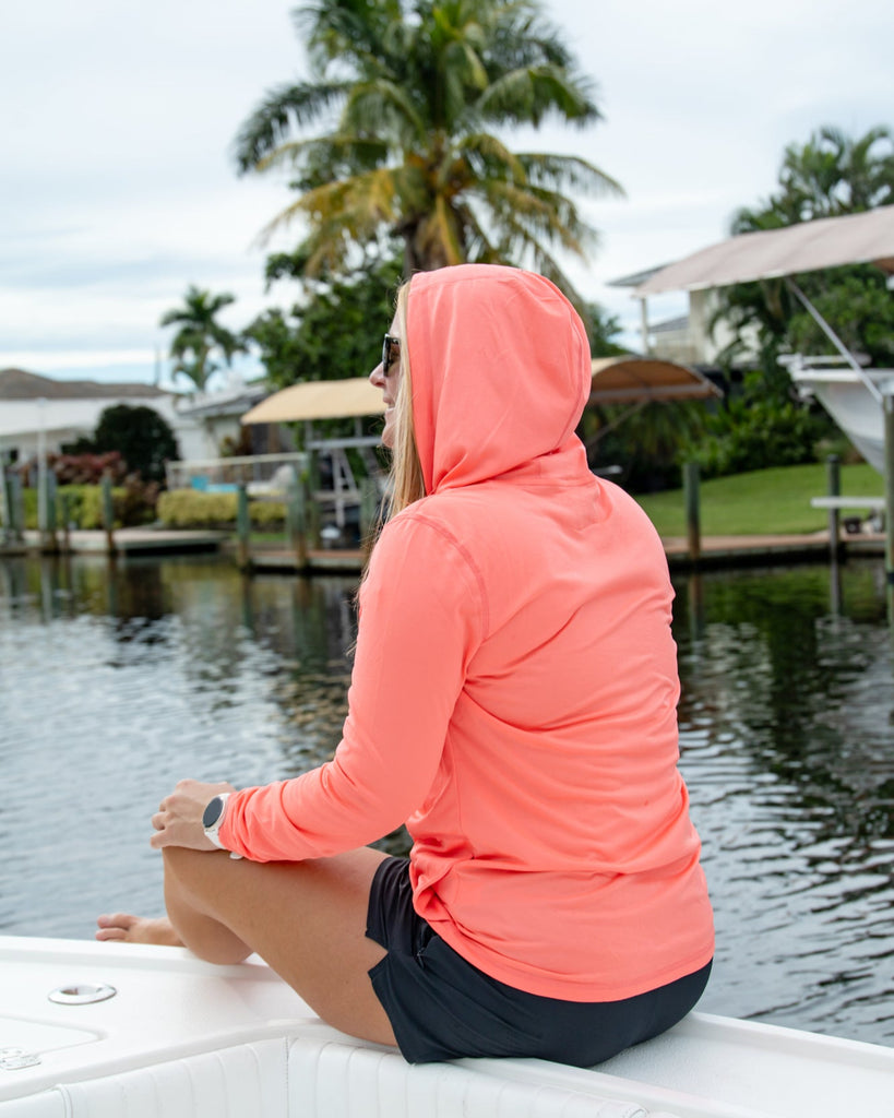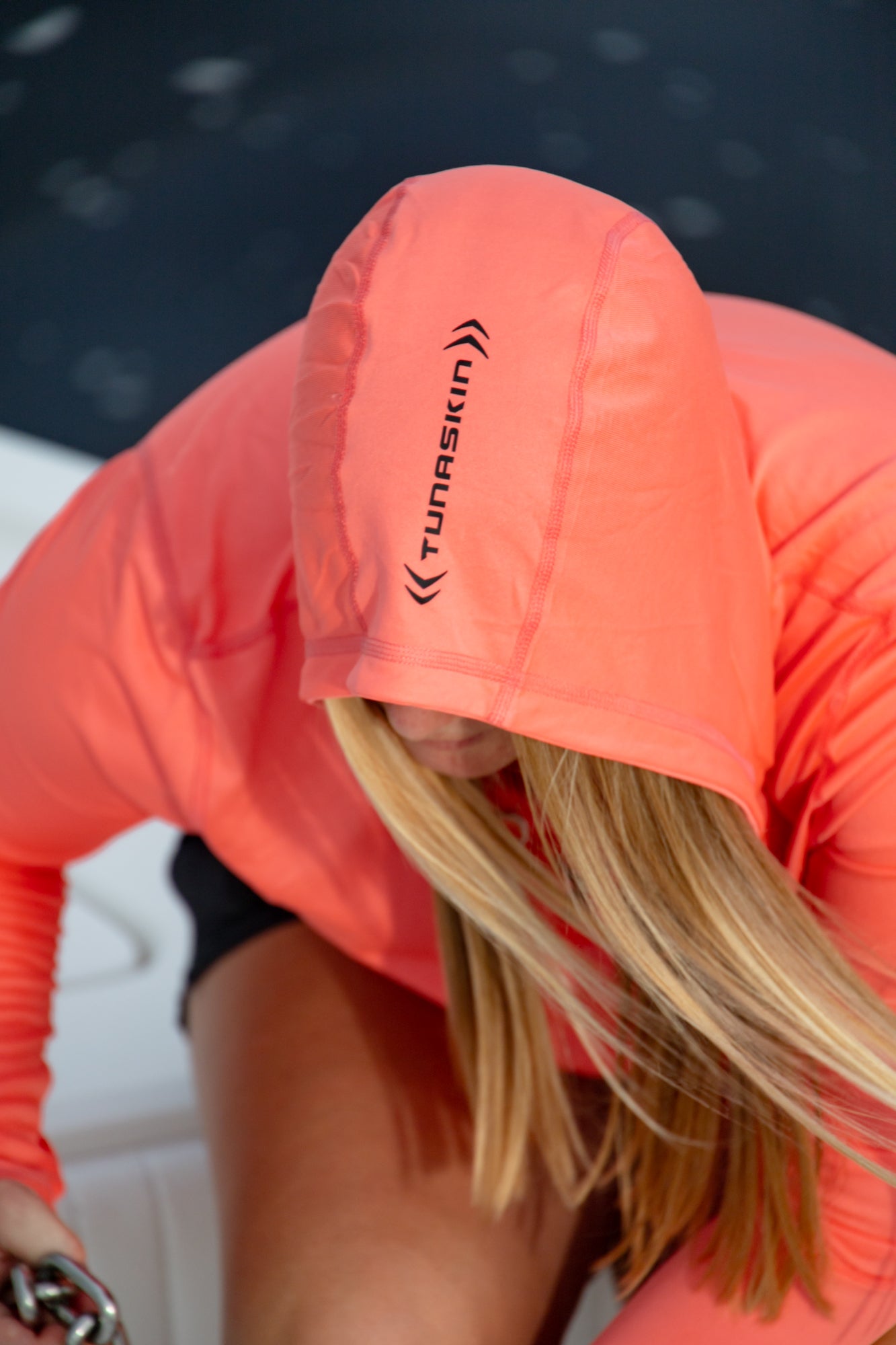The Tunaskin ECHO Performance Hoodie is ideal for when you need sun protection yet still breathable to keep you cool. Engineered with REPREVE fiber, this top provides UPF 35+ sun protection with a sueded inside to make it extremely comfortable against your skin. Designed with advanced needlework the ECHO line is a durable top for those who have an active lifestyle. The TSK ECHO Performance Hoodie also features a full hood and thumbholes to allow for full sun protection. 2 open side pockets are great for both storage and comfort.
