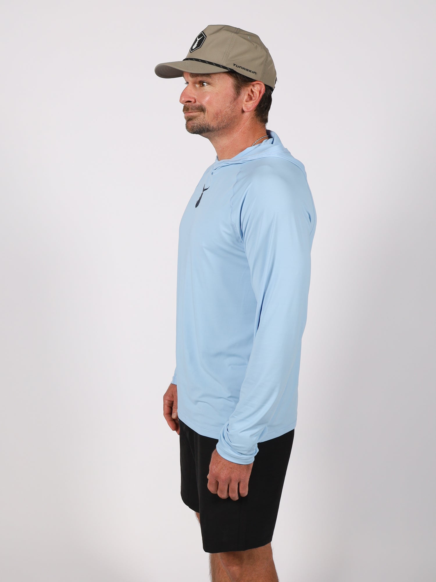 Tunaskin's Men's Ahi Breeze Hoodie is a lightweight cooling UPF performance garment built for all day comfort in the sun. Made from SENSIL® Breeze nylon, it delivers advanced cooling, breathability, and UPF 50+ sun protection.