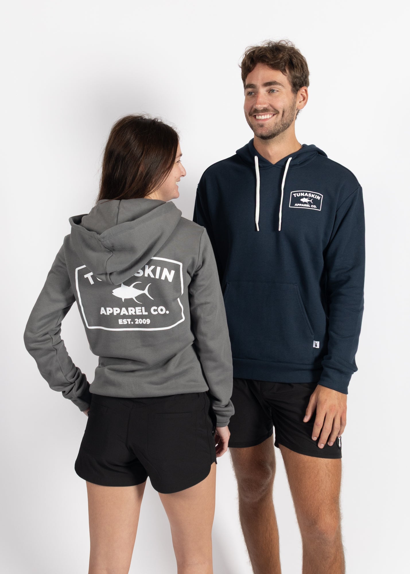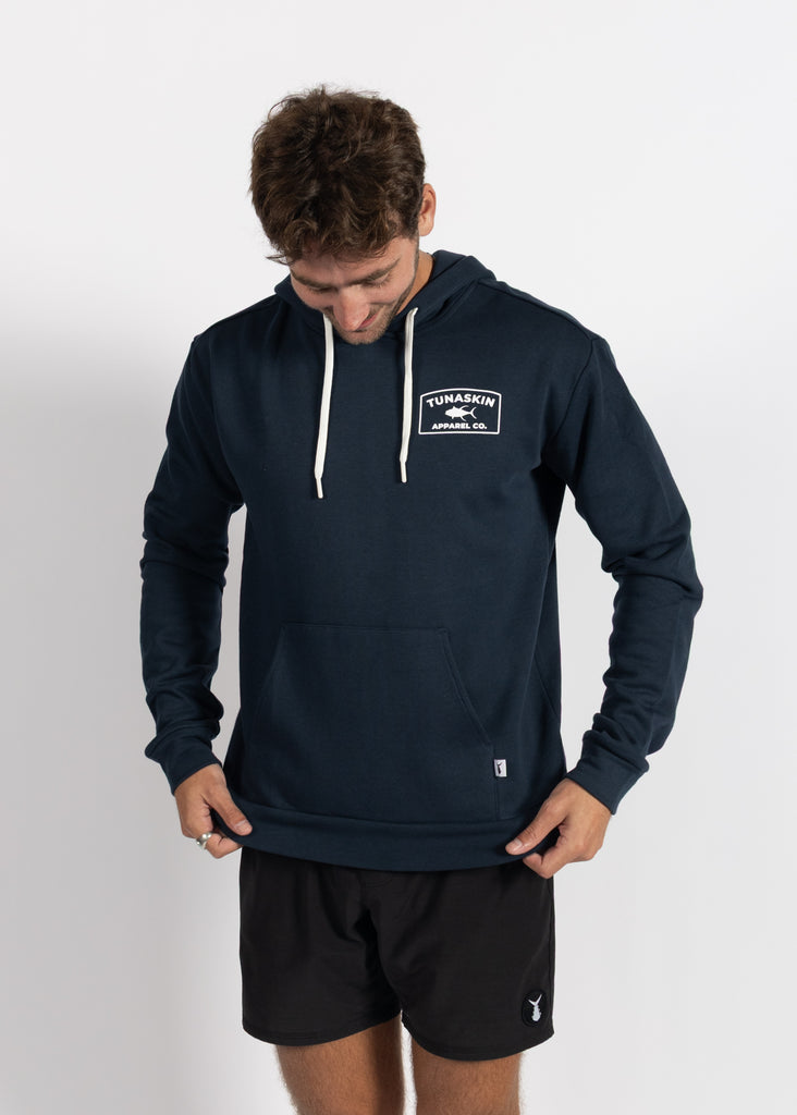 The Tunaskin Hooded Sweatshirt is your go to layer for cooler days. Featuring the our new silkscreened graphic design on the front and back, this cozy hoodie offers a trim, unisex fit with a double ply hood, adjustable drawcord, and a convenient kangaroo pocket. 85% cotton, 15% polyester.